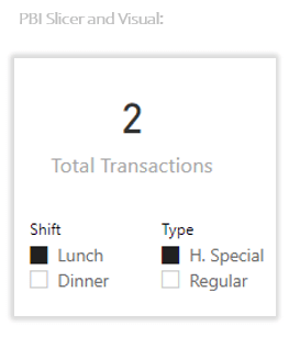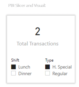 Here’s our example where we took the Auto Snapshot of the “Sale” Model Table with slicers set to “Lunch” and “H. Special”: