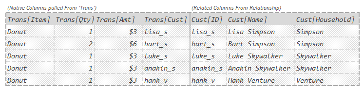 It then finds the column called “Cust[Household]” at the end, and produces a new Temp Table with just that one column’s unique values. (The duplicate values for “Simpson” and “Skywalker” get dropped):