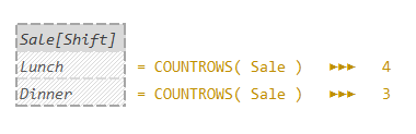 ▸ CALCULATE( COUNTROWS( Sale ) )